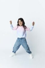 With a relaxed silhouette and practical details like snap buttons on the neckline, this garment is designed so girls can dress themselves easily and independently.